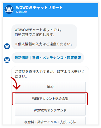 ログインできない場合、WEBアカウントの退会については、チャットオペレーター、またはメールにてご案内します。