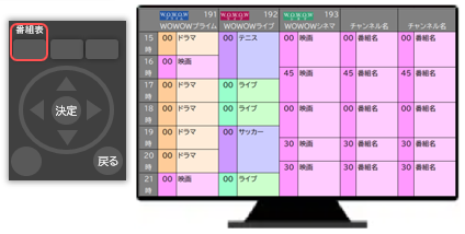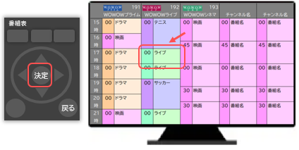 WOWOWの録画は、電子番組表(EPG)から録画したい番組を選択・決定する予約録画方法が一般的です。