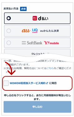 (6) WOWOW WEB規約、個人情報規定を同意のうえ「入力内容を確認する」を選択します。