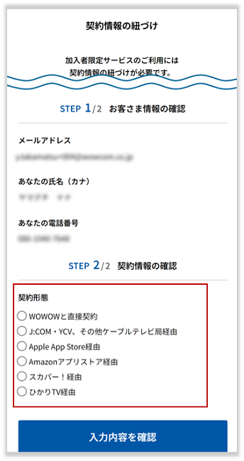 3.契約形態が「WOWOWと直接契約 - 旧放送契約」「J:COM・YCV、その他ケーブルテレビ局経由」以外