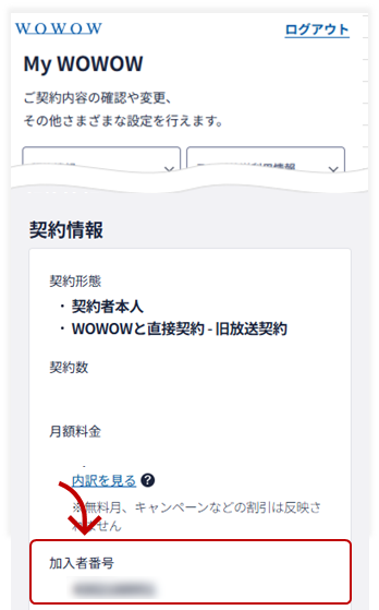※2023/6/27以降にWEBでご加入された方、およびご契約形態:旧配信契約は、加入者番号を発行していません。
